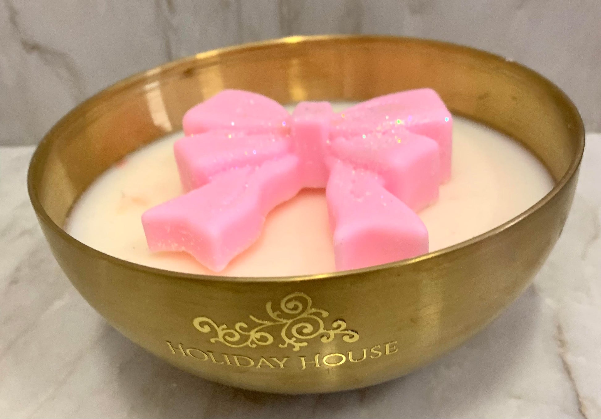 Introducing our luxurious 19 oz soy candle in a metallic gold vessel, adorned with a dainty pink bow. Experience the exclusive Pink Cashmere fragrance, evoking a sense of indulgence and sophistication. Elevate your space with this elegant and refined addition.