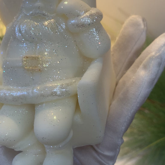This elegant Santa in Chair Candle is crafted from soy wax and finished with luxurious gold and silver leaf accents. Its intricate design will add a touch of sophistication to any room. Perfect for gifting, this candle is sure to delight.